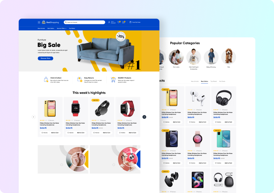 Welcome to EaziShopping, the ultimate ecommerce website template for your business. Whether you are starting a new online store or upgrading an existing one, EaziShopping provides a sleek and modern design that will attract customers and increase conversions. Our template is built on the WebCommander platform, ensuring that your website is responsive and easily accessible on all devices.